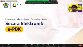 Tim Penyuluh Kantor Pelayanan Pajak (KPP) Madya Bandung membahas ketentuan terkait permohonan Pemindahbukuan (PBK) melalui layanan e-Pbk pada kelas pajak daring, di Gedung Keuangan Negara Jalan Asia Afrika No.114, Kota Bandung (Kamis, 9/2).