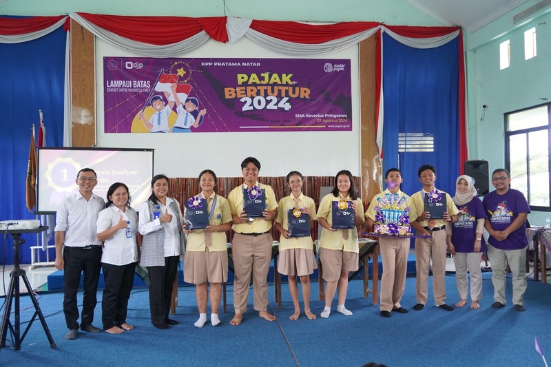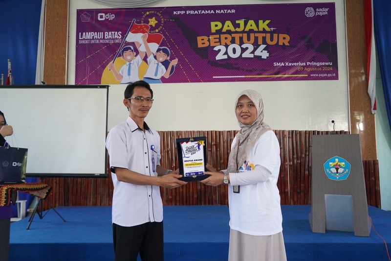 Kantor Pelayanan Pajak (KPP) Pratama Natar menyelenggarakan kegiatan Pajak Bertutur 2024 di Sekolah Menengah Atas (SMA) Xaverius Pringsewu, Jalan Mawar I Nomor 32, Pringsewu Timur, Pringsewu, Lampung (Rabu, 7/8). Kegiatan ini dihadiri oleh 60 siswa/i SMA Xaverius Pringsewu dengan mengusung tema "Lampaui Batas, Bangkit untuk Indonesia Emas".