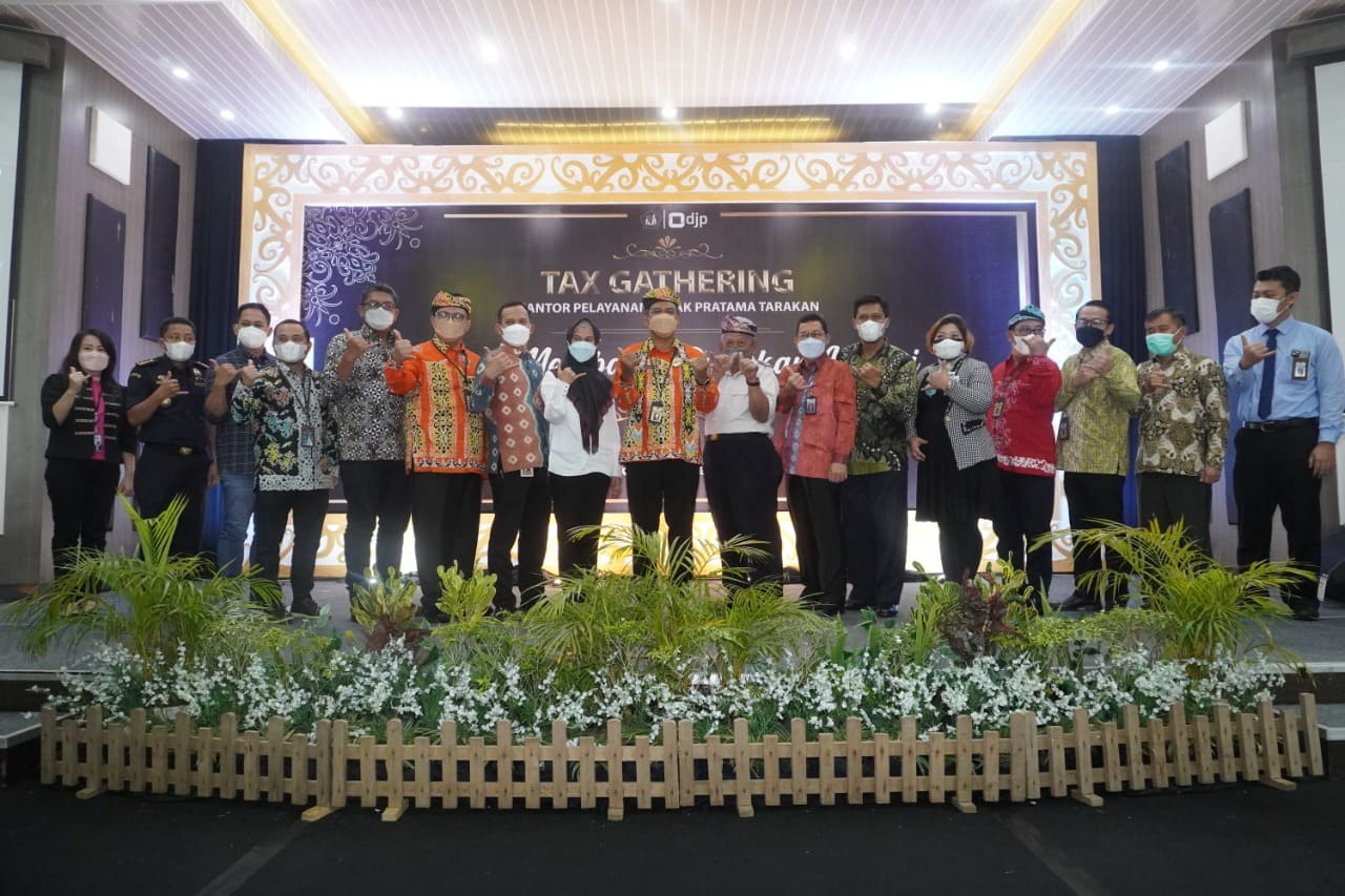 Acara Tax Gathering diselenggarakan untuk memberikan penghargaan kepada wajib pajak atas kontribusinya terhadap penerimaan pajak tahun 2021. Dengan mengusung tema “Bahu-Membahu Pulihkan Ekonomi”, KPP Pratama Tarakan mengajak wajib pajak maupun stakeholders untuk saling bersinergi dalam upaya memulihkan ekonomi dikala pandemi Covid-19. Selain itu, tema ini diharapkan dapat menggugah kesadaran bahwa begitu pentingnya pajak yang telah dibayarkan untuk kelangsungan pembiayaan negara.