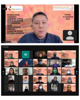 Tim Penyuluh Kantor Wilayah Direktorat Jenderal Pajak (Kanwil DJP) Wajib Pajak Besar menjadi narasumber Sosialisasi Undang–Undang No. 11 Tahun 2020 tentang Cipta Kerja, dan Peraturan Perpajakan Dibidang Logistik secara daring di Jakarta (Kamis, 12/8).