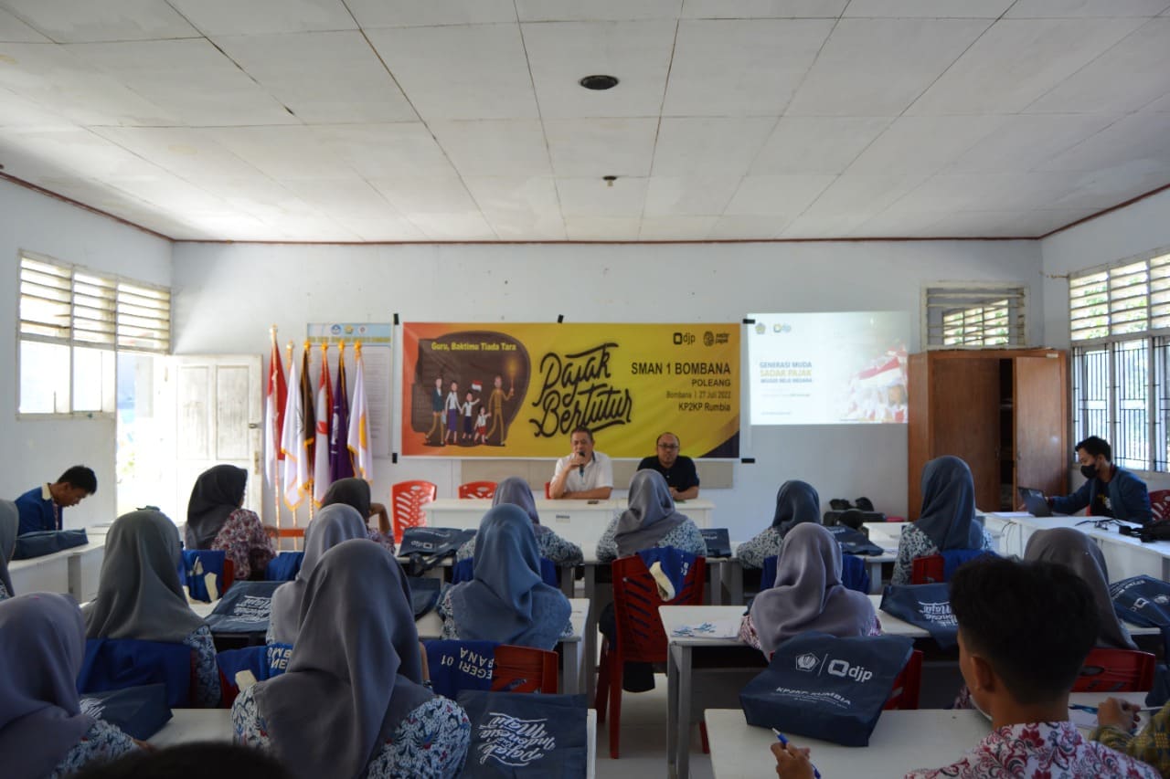 Kantor Pelayanan, Penyuluhan, dan Konsultasi Perpajakan (KP2KP) Rumbia mengadakan kegiatan Tax Goes to School (TGTS) untuk pelajar SMAN 1 Bombana (Rabu, 27/7). Kegiatan ini dilaksanakan secara tatap muka di ruang kelas SMAN 1 Bombana, Kecamatan Poleang, Kabupaten Bombana.