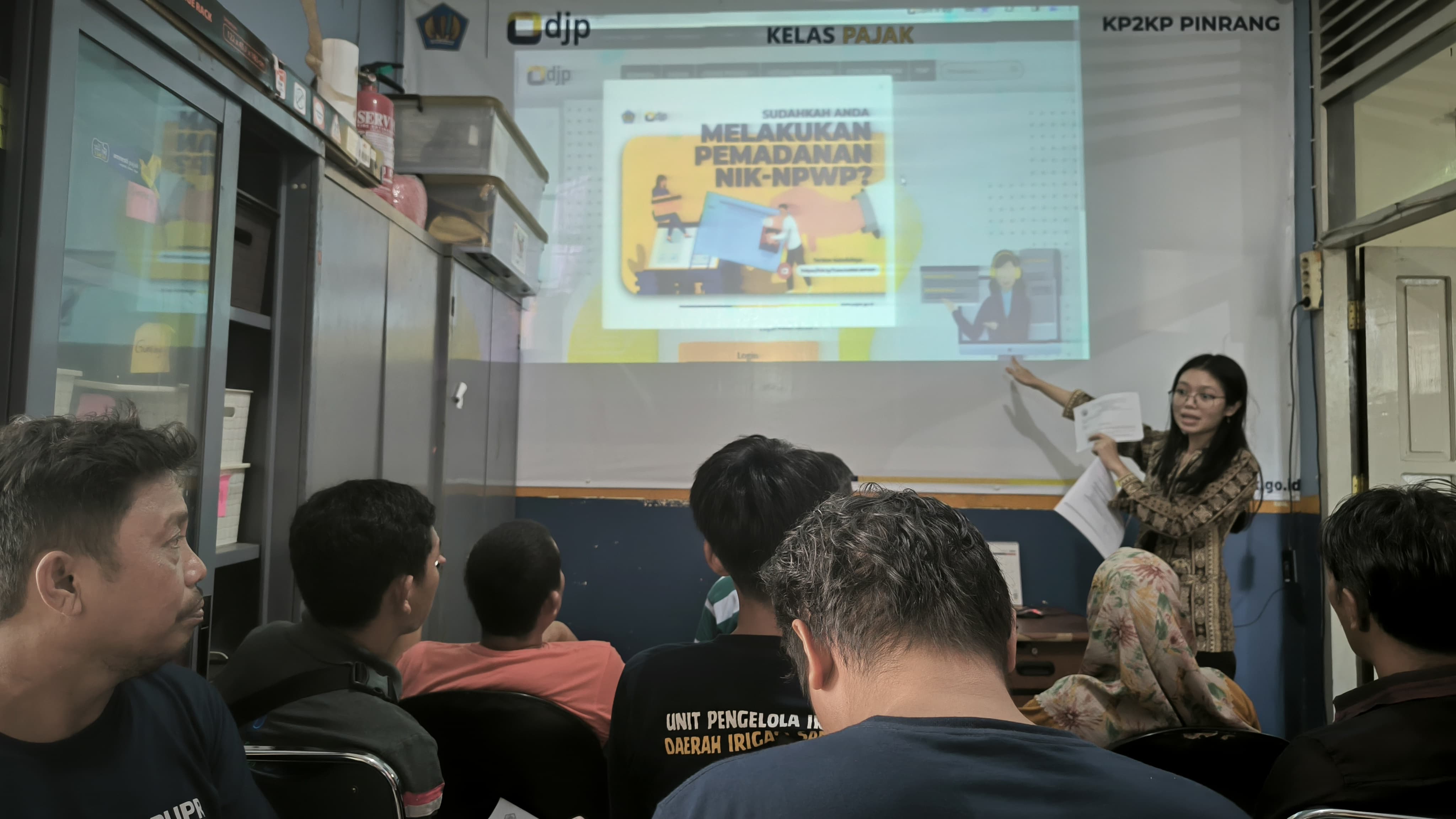 Kantor Pelayanan, Penyuluhan, dan Konsultasi Perpajakan (KP2KP) Pinrang menggelar dua sesi edukasi di Kelas Pajak KPK2P Pinrang, Jalan Jenderal Sukawati, Kelurahan Macorawalie, Kecamatan Watang Sawitto, Kabupaten Pinrang (Jumat, 8/3). Edukasi tersebut mengusung materi tata cara pelaporan Surat Pemberitahuan (SPT) Tahunan serta pemadanan Nomor Induk Kependudukan (NIK) dengan Nomor Pokok Wajib Pajak (NPWP).