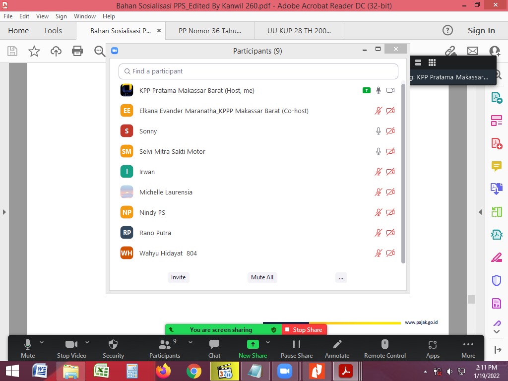 Kantor Pelayanan Pajak (KPP) Pratama Makassar Barat mengadakan Kelas Pajak Online dengan tema Program Pengungkapan Sukarela (PPS) melalui Zoom Meeting di Ruang Aula KPP Pratama Makassar Barat (Rabu, 26/1).