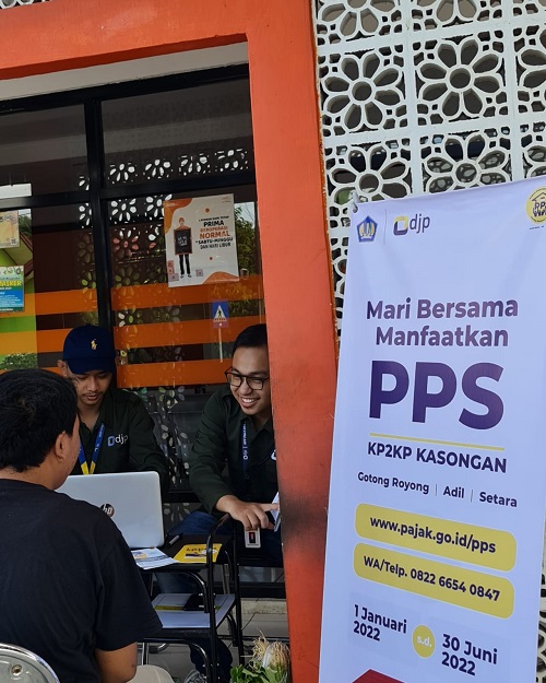Bekerja sama dengan Kantor Pos Kasongan Lama, Kantor Pelayanan, Penyuluhan, dan Konsultasi Perpajakan (KP2KP) Kasongan menggelar Pojok Pajak Program Pengungkapan Sukarela (PPS) di Kantor Pos Kasongan, Kabupaten Katingan, Kalimantan Tengah (Minggu, 19/6). Kegiatan ini bertujuan untuk meningkatkan pemahaman dan minat para wajib pajak untuk berperan serta dalam PPS yang akan berakhir pada 30 Juni 2022.
