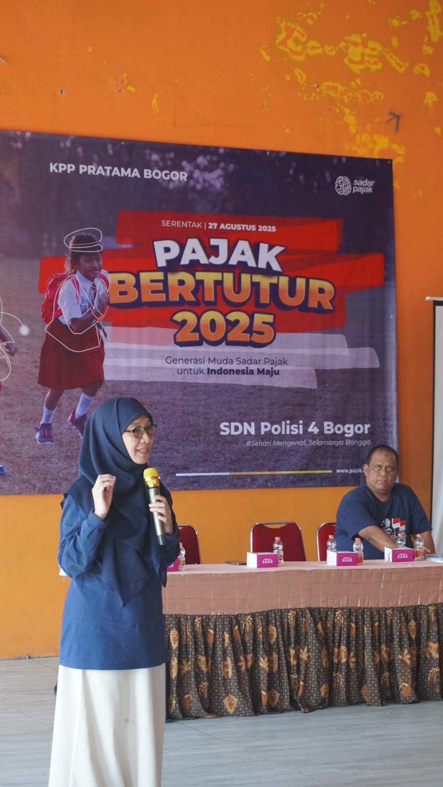 Dalam rangka menggaungkan Program Inklusi Kesadaran Pajak dalam Pendidikan sekaligus memperingati Hari Kemerdekaan Republik Indonesia ke-80, Kantor Pelayanan Pajak (KPP) Pratama Bogor menyelenggarakan kegiatan Pajak Bertutur di Sekolah Dasar Polisi 4, Kota Bogor (Rabu, 25/8).