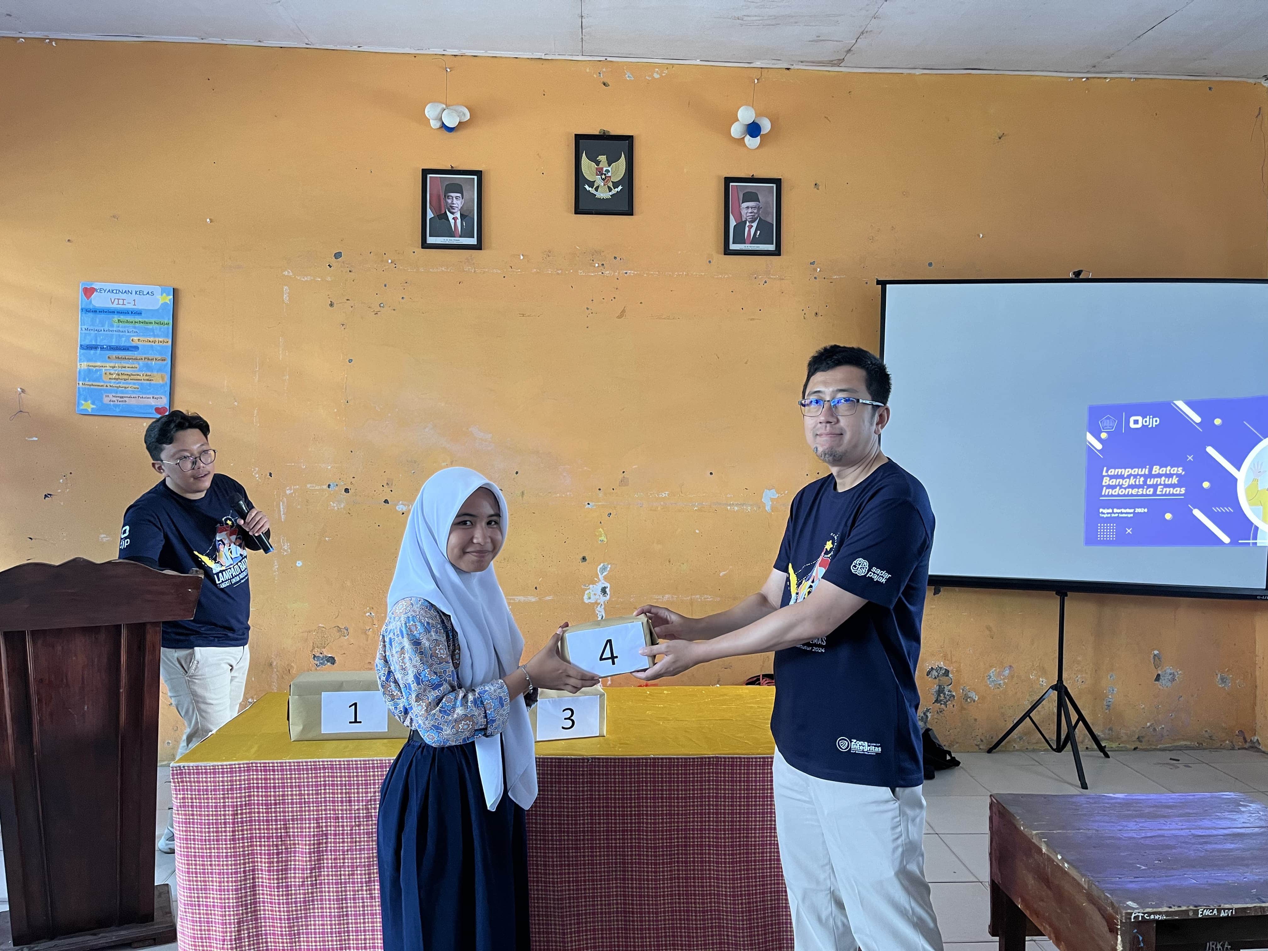 Pada akhir acara, Alfin mengucapkan terima kasih atas kerja sama SMP 1 Halmahera Selatan dalam terselenggaranya kegiatan Pajak Bertutur 2024.