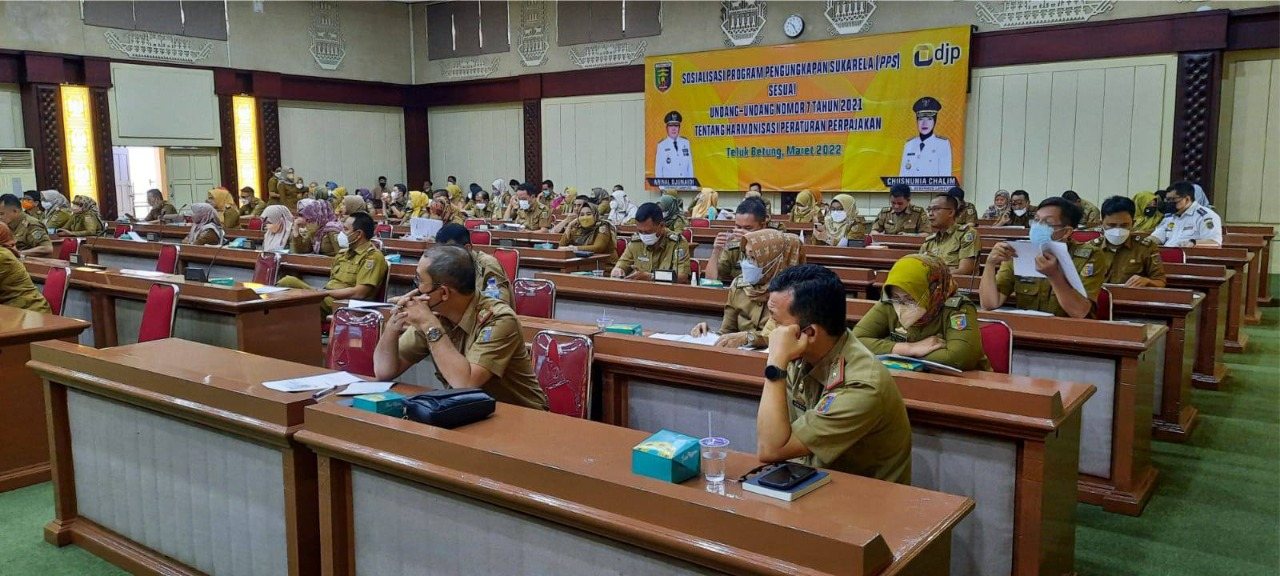 Kanwil DJP Bengkulu dan Lampung bekerjasama dengan Pemerintah Daerah Provinsi Lampung mengadakan acara “Sosialisasi Program Pengungkapan Sukarela Sesuai Undang-undang Nomor 7 Tahun 2021 tentang Harmonisasi Peraturan Perpajakan Sekaligus Penyampaian SPT Tahunan Tahun 2021 Pejabat Pemerintah Provinsi Lampung” di Gedung PUSIBAN Komplek Pemda Provinsi Lampung, Kota Bandar Lampung (Senin, 21/3).