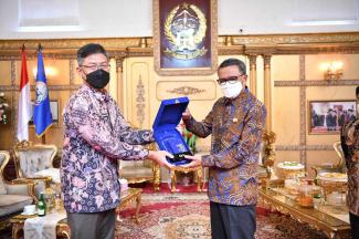 Kepala Kanwil DJP Sulawesi Selatan, Barat, dan Tenggara (Sulselbartra) Hantriono Joko Susilo bersama jajarannya melakukan kunjungan kerja ke Rumah Jabatan Gubernur Sulawesi Selatan di Kota Makassar guna melaksanakan audiensi (Selasa, 23/2).
