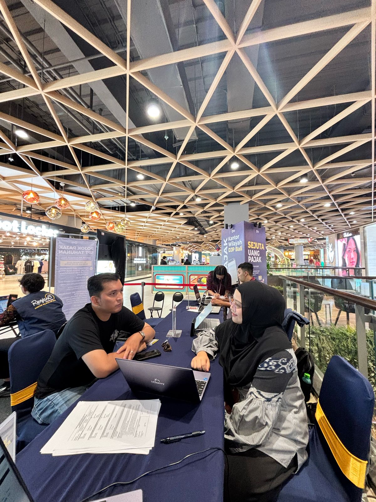 Kantor Pelayanan Pajak (KPP) Pratama Denpasar Barat bersama Kantor Wilayah DJP Bali hadir kembali di Living World Denpasar (Senin,17/3) dalam bentuk Pojok Pajak. Layanan yang diberikan berupa aktivasi/lupa EFIN, asistensi pelaporan SPT Tahunan, serta konsultasi terkait perpajakan. Pojok Pajak ini direncanakan digelar sampai dengan tanggal 23 Maret 2025.
