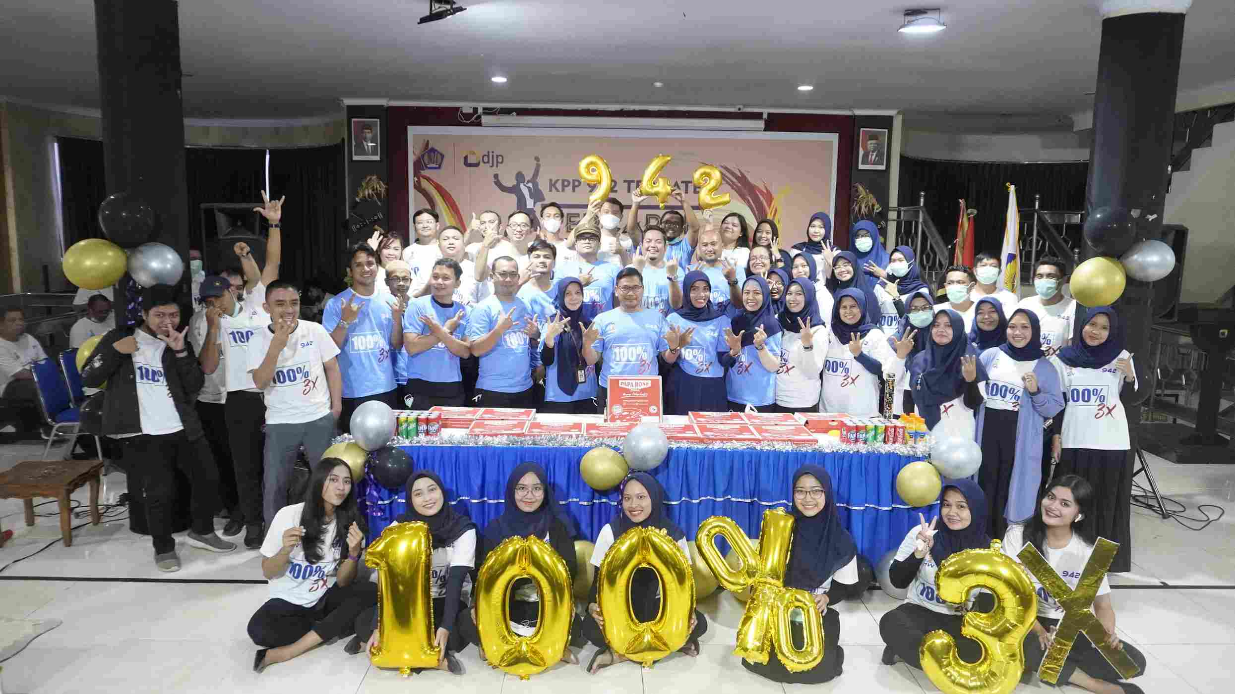 Kantor Pelayanan Pajak (KPP) Pratama Ternate mengadakan syukuran atas tercapainya 100% target penerimaan pajak di Halaman KPP Pratama Ternate, Kota Ternate (Kamis, 16/12).