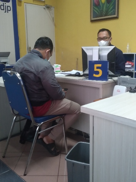 Seorang Wajib Pajak (WP) mengunjungi loket helpdesk Kantor Pelayanan Pajak (KPP) Pratama Sukabumi untuk melakukan konsultasi pemindahanan Nomor Pokok Wajib Pajak (NPWP) di Jalan RE Martadinata No 1, Gunungparang, Cikole, Kota Sukabumi (Rabu, 10/1).