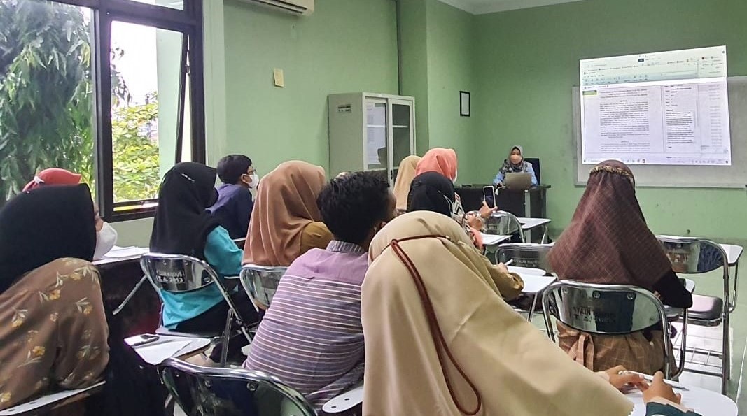 Sembari membahas materi kaidah penulisan daftar pustaka dan kutipan, Ulfah meminta mahasiswa untuk praktik penggunaan mendeley.“Masukan kutipan contohnya yang ini: pajak merupakan salah satu unsur terpenting dalam menunjang anggaran penerimaan negara, realisasi rencana pebangunan nasional memerlukan dana yang cukup besar yang sebagian besar diperoleh dari pajak,”papar Ulfah memberikan contoh.