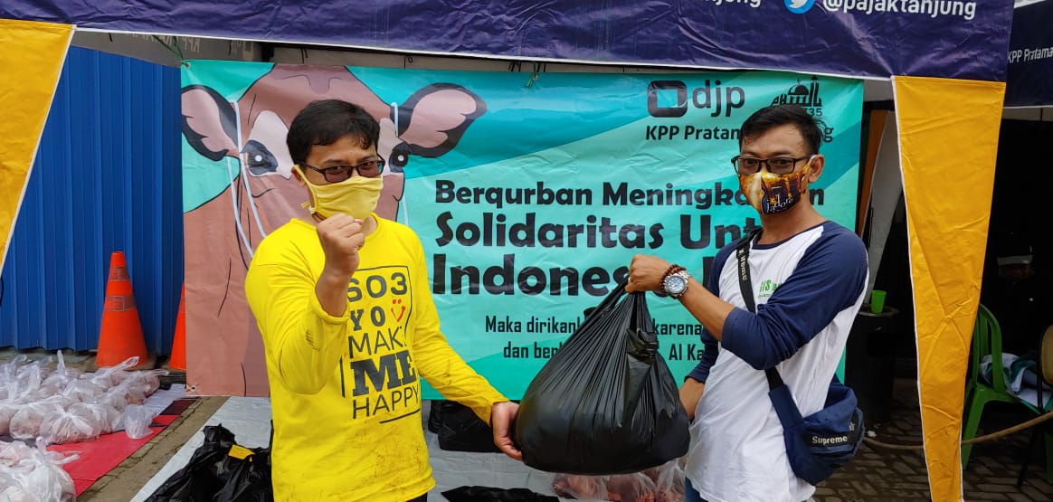 Perayaan Idul Adha tahun 2020 ini, KPP Pratama Tanjung kembali menyelenggarakan penyembelihan hewan kurban di Tanjung, Kalimantan Selatan (Senin, 3/8). Kegiatan ini dilangsungkan di halaman KPP Pratama Tanjung dengan menerapkan protokol pencegahan penyebaran Covid-19.