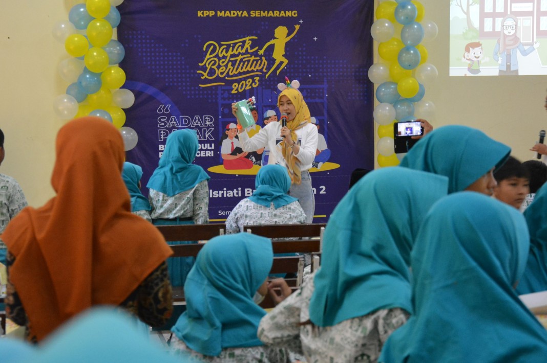 Kantor Pelayanan Pajak (KPP) Madya Semarang menyelenggarakan acara Pajak Bertutur tahun 2023 di Sekolah Dasar Hajjah Isriati Baitturahman 2 (SD Isriati 2) Semarang (Kamis, 27/8).
