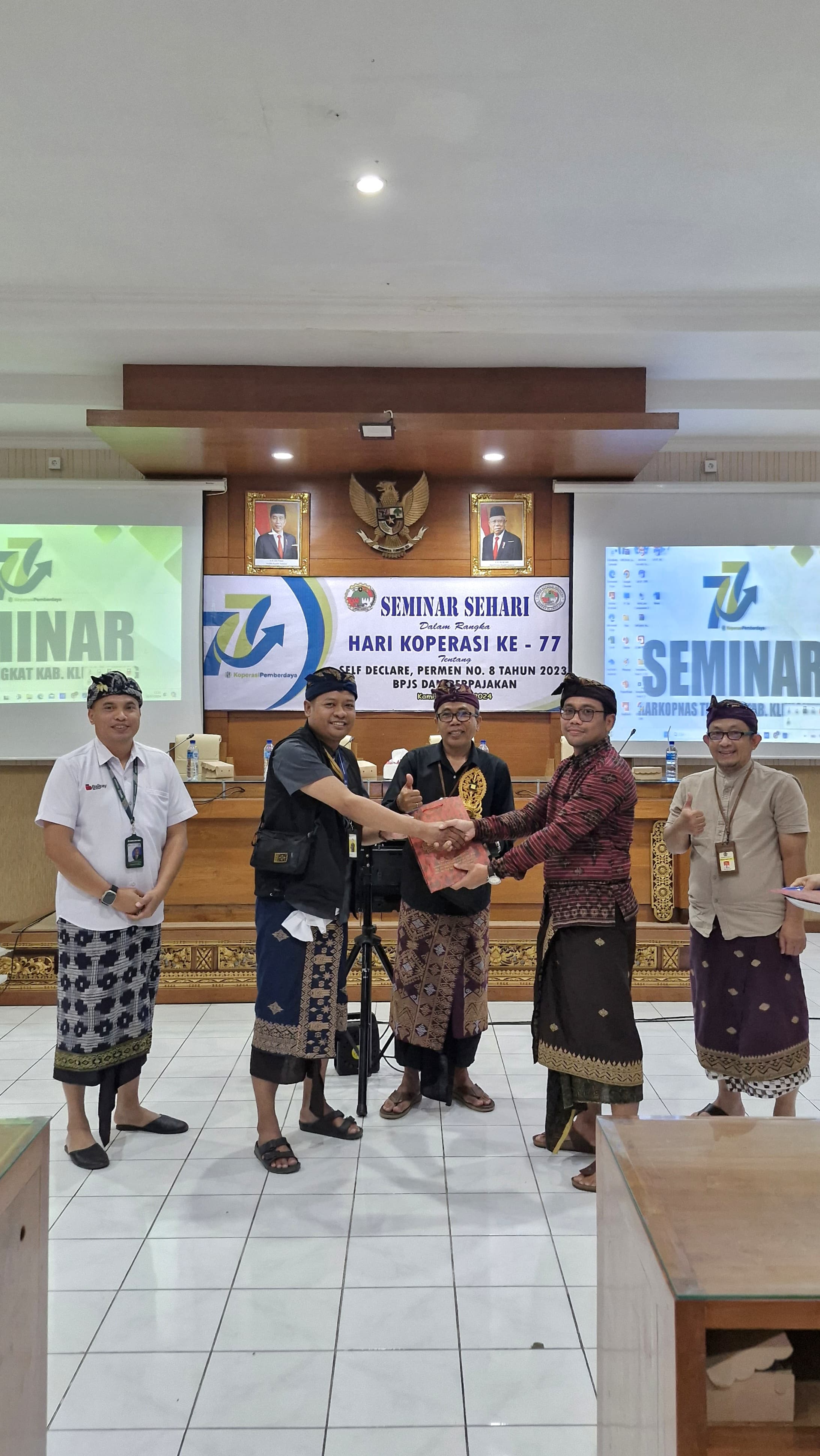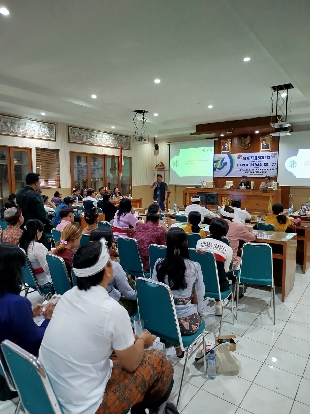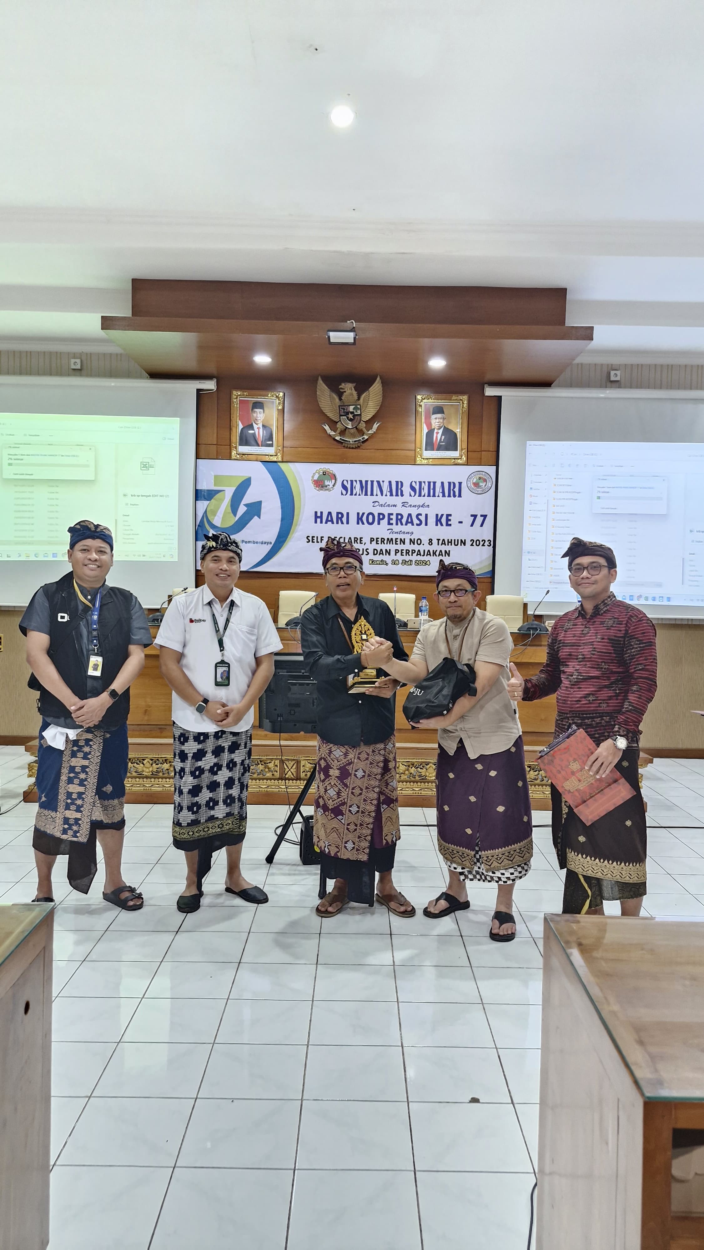 Tim Kantor Penyuluhan, Pelayanan dan Konsultasi Perpajakan (KP2KP) Ubud bersama Tim Kantor Pelayanan Pajak (KPP) Pratama Gianyar melaksanakan sosialisasi kepada koperasi-koperasi se-Kabupaten Klungkung di Seminar Sehari dalam rangka Hari Koperasi Ke-77 tentang Self Declare, Permen No. 8 Tahun 2023, BPJS, dan Perpajakan yang bertempat di Praja Mandala Kantor Bupati Klungkung, Bali (Kamis, 18/7).