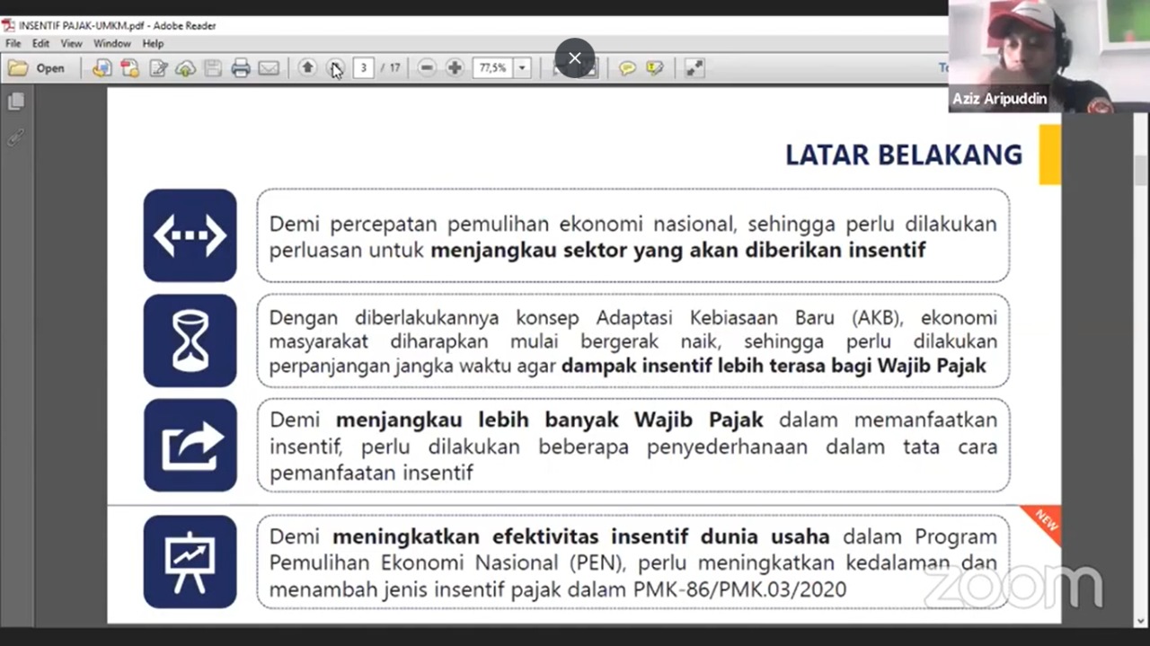 Kantor Pelayanan Pajak (KPP) Pratama Palopo dan Kantor Pelayanan, Penyuluhan, dan Konsultasi Perpajakan (KP2KP) Malili mengadakan Business Development Services (BDS) secara virtual bagi pelaku Usaha Mikro, Kecil, dan Menengah di Kota Palopo dan Kabupaten Luwu Timur (Kamis, 17/9).