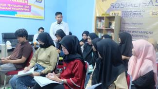 Kantor Pelayanan, Penyuluhan, dan Konsultasi Perpajakan (KP2KP) Watansoppeng mengundang mahasiswa Universitas Lamappapoleonro untuk mengikuti kegiatan edukasi perpajakan. Edukasi dilaksanakan di ruang penyuluhan KP2KP Watansoppeng, Kabupaten Soppeng (Senin, 11/12).