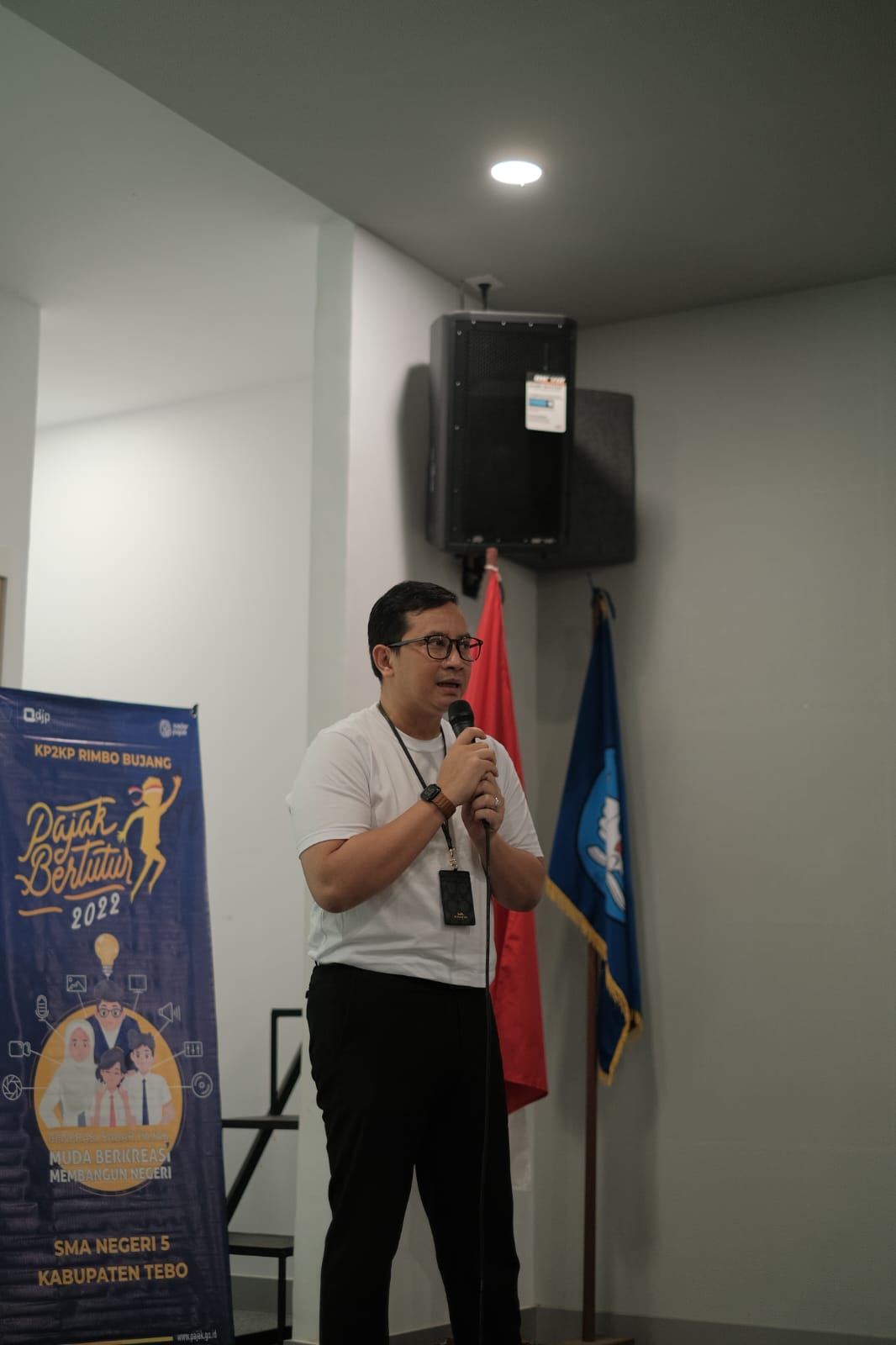Pada tahun ini KP2KP Rimbo Bujang mengadakan kegiatan Pajak Bertutur di SMAN 05 Tebo dengan jumlah peserta sebanyak 30 siswa-siswi. Acara diawali dengan doa bersama dan menyanyikan Lagu Indonesia Raya. Selanjutnya acara dibuka dengan Kepala SMAN 05 Tebo yang pada kali ini diwakili oleh Wakahumas, Pak Mukholid dan dilanjutkan dengan sambutan Kepala KP2KP Rimbo Bujang, Bapak Yosep Erdy Nugraha.