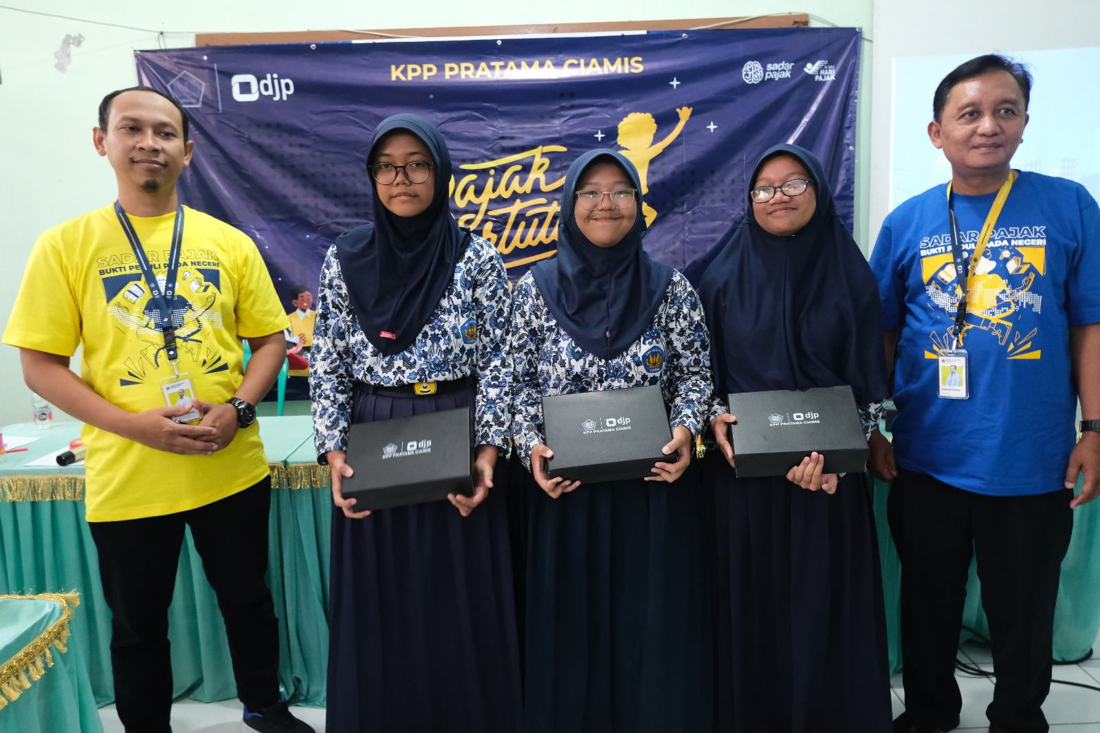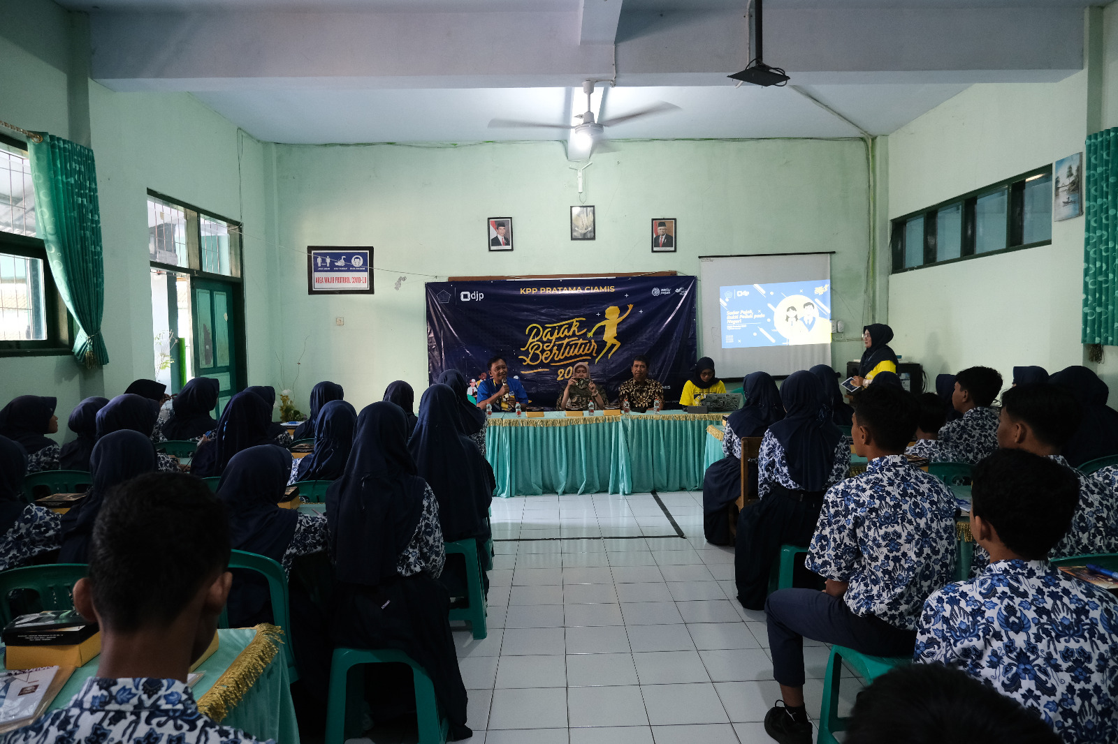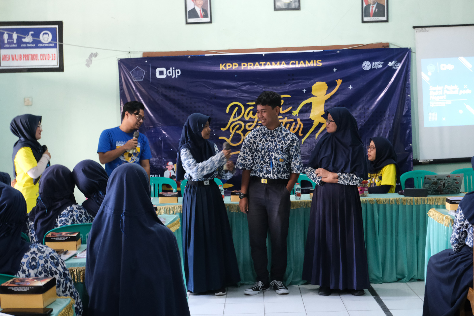 Kantor Pelayanan Pajak (KPP) Pratama Ciamis menggelar Pajak Bertutur 2023 di SMP Negeri 4 Ciamis, Jalan Tentara Pelajar no. 2, Kabupaten Ciamis (Kamis, 27/7). Kegiatan yang mengangkat tema “Sadar Pajak, Bukti Peduli pada Negeri” ini diikuti oleh 50 siswa SMPN 4 Ciamis. Materi Pajak Bertutur disampaikan oleh Tim Penyuluh KPP Pratama Ciamis dengan format interaktif diselingi games dan tanya jawab.