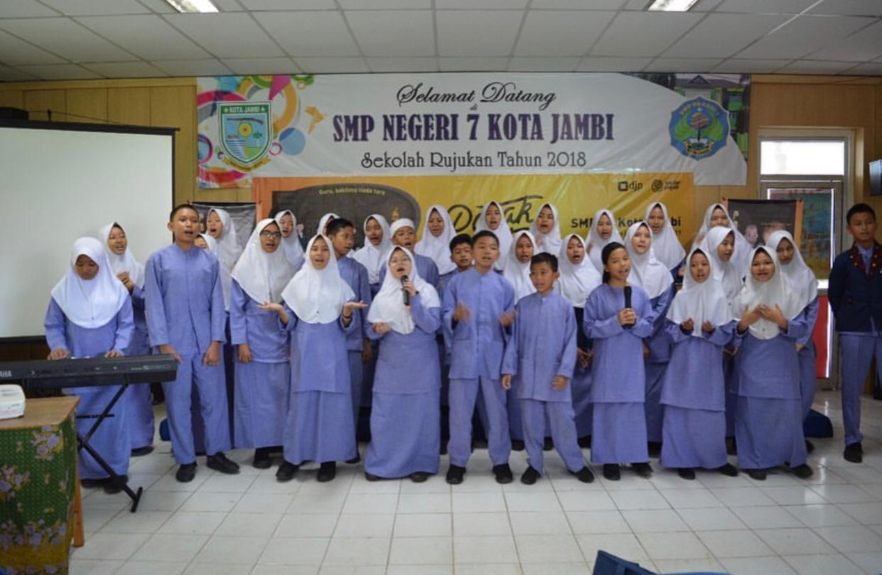 Selain SDN 185 Kota Jambi KPP Pratama Jambi Telanaipura turut melaksanakan Kegiatan Pajak Bertutur di sekolah yang tak jauh dari kantor, yaitu SMPN 7 Kota Jambi (Jumat, 22/11). Rangkaian kegiatan terdiri dari perlombaan Rangking 1 dan persembahan lagu untuk Guru-guru di SMPN 7 sendiri. Diawali dengan semangat dan keceriaan acara bertukar sendu ketika penampilan persembahan untuk guru ditampilkan.