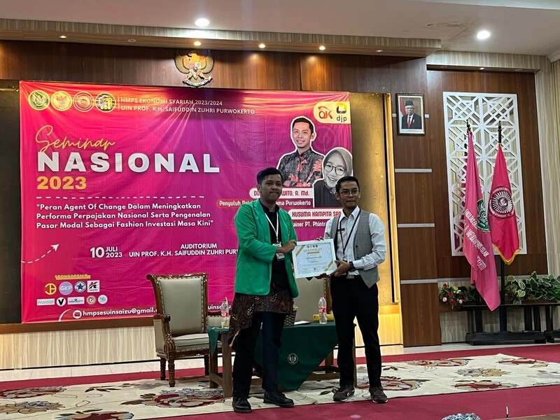 Acara ini merupakan rangkaian seminar nasional yang diselenggarakan oleh Himpunan Mahasiswa Program Studi (HMPS) Ekonomi Syariah dari UIN SAIZU yang bertujuan untuk memberikan pemahaman yang lebih baik kepada generasi muda, khususnya mahasiswa sebagai Agent of Change dalam meningkatkan performa perpajakan nasional.