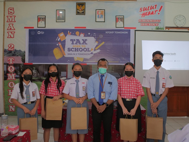 Kantor Pelayanan, Penyuluhan dan Konsultasi Perpajakan (KP2KP) Tomohon melaksanakan kegiatan Tax Goes To School (TGTS) di Sekolah Menengah Atas (SMA) Negeri 2 Tomohon, Kelurahan Taratara Tiga, Kecamatan Tomohon Barat, Kota Tomohon (Rabu, 15/6). Kegiatan ini merupakan acara TGTS kedua yang dilaksanakan KP2KP Tomohon secara luring di sepanjang tahun 2022.