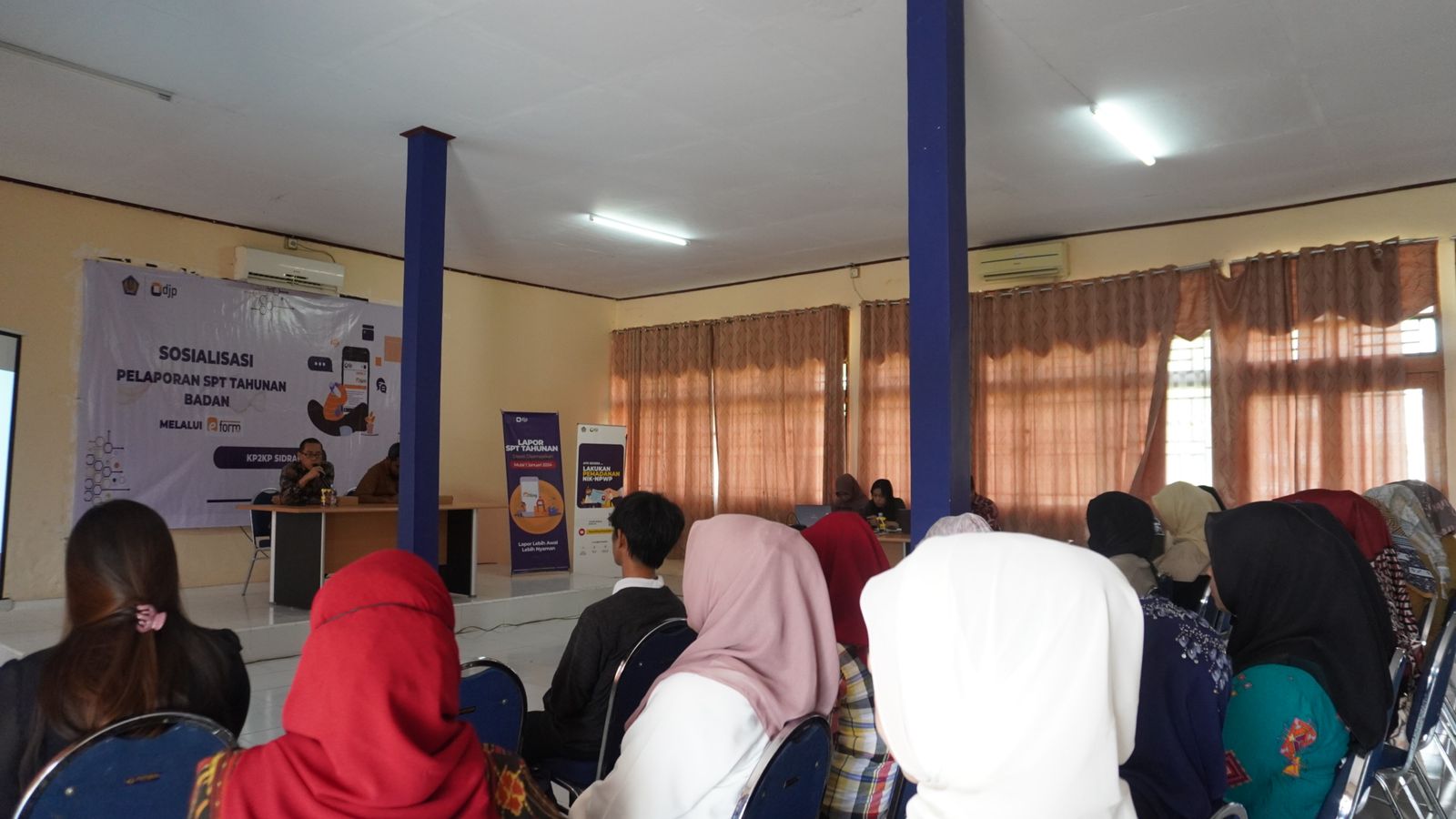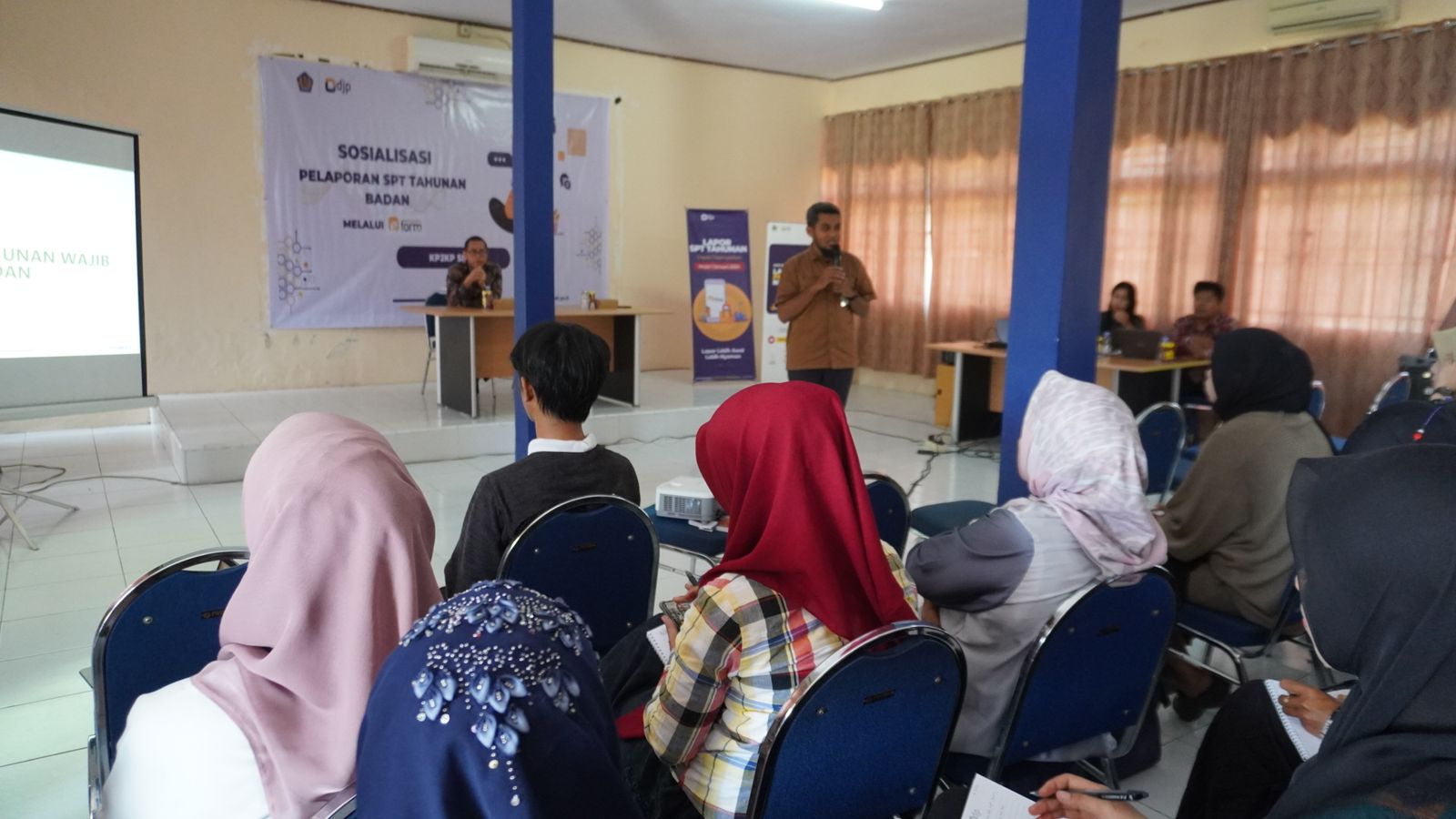 Kantor Pelayanan, Penyuluhan, dan Konsultasi Perpajakan (KP2KP) Sidrap lakukan sosialisasi kewajiban pelaporan Surat Pemberitahuan (SPT) Tahunan bagi Wajib Pajak Badan secara luring di Aula KP2KP Sidrap yang beralamat di Jalan Ganggawa No. 40, Kelurahan Majelling, Kecamatan Maritengngae, Kabupaten Sidenreng Rappang (Kamis, 7/3). Kegiatan ini dilaksanakan sebagai bentuk edukasi sekaligus imbauan kepada Wajib Pajak Badan untuk segera melaporkan SPT Tahunan.