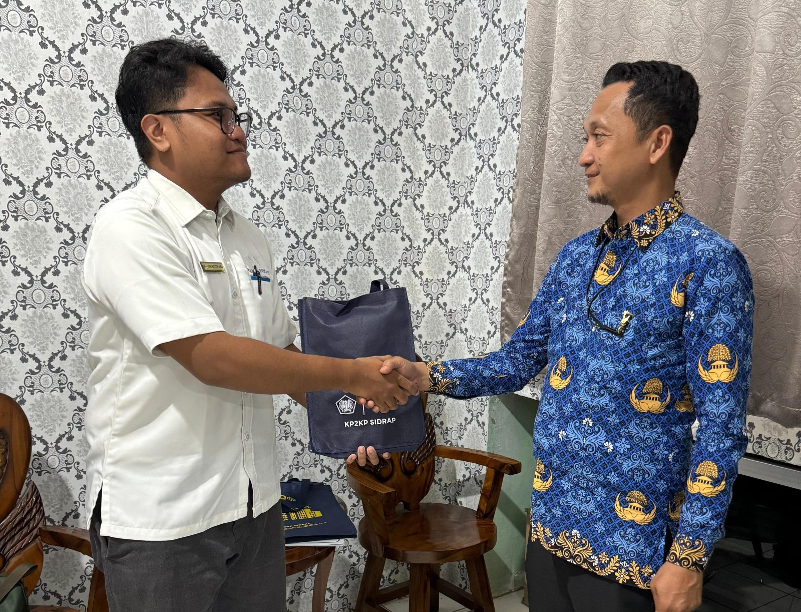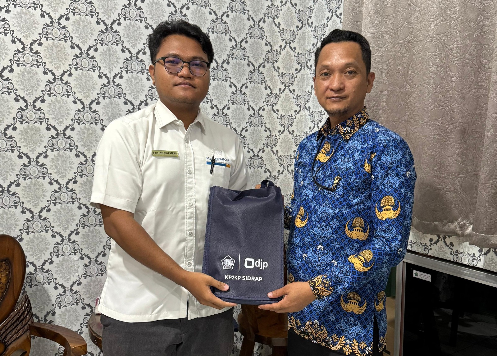 Pelaksana KP2KP Sidrap Rio dan Relawan Pajak Alif menjelaskan maksud kedatangan Tim KP2KP Sidrap yaitu untuk mengawal sekaligus meningkatkan kepatuhan pajak instansi pemerintah di wilayah kabupaten Sidenreng Rappang.