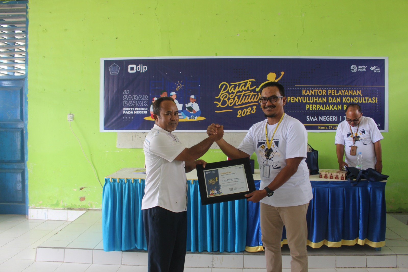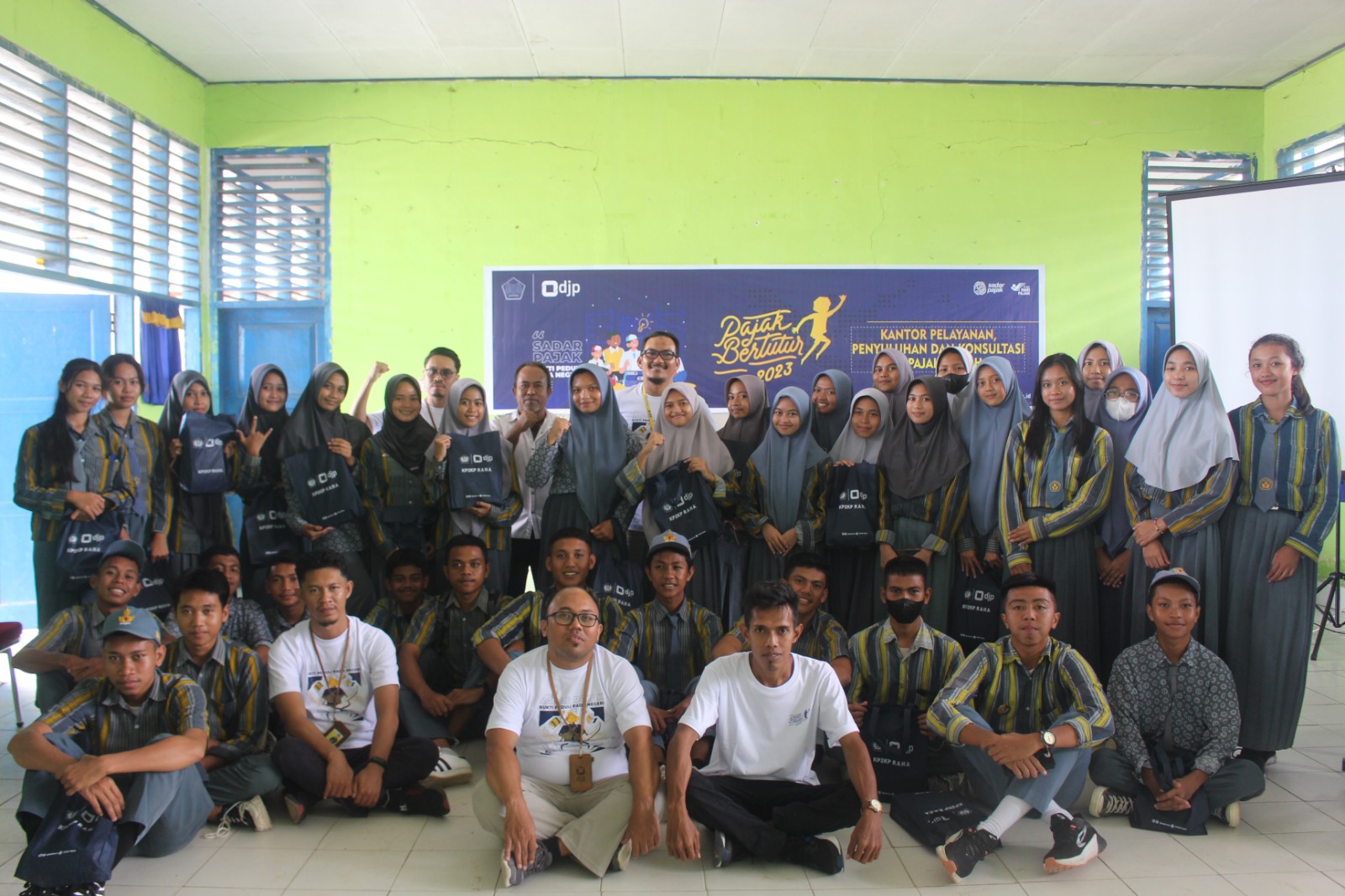 Kantor Pelayanan, Penyuluhan, dan Konsultasi Perpajakan (KP2KP) Raha mengadakan kegiatan Pajak Bertutur 2023 di Sekolah Menengah Atas (SMA) Negeri 1 Tiworo Kepulauan, Kab. Muna Barat (Kamis, 27/7).