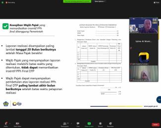 Kantor Pelayanan Pajak (KPP) Pratama Purbalingga membuka kelas pajak bertema "Tata Cara Penggunaan Insentif untuk Wajib Pajak Terdampak Pandemi Corona Virus Disease 2019" secara daring melalui aplikasi Zoom Cloud Meetings di KPP Pratama Purbalingga, Purbalingga (Kamis,12/8).