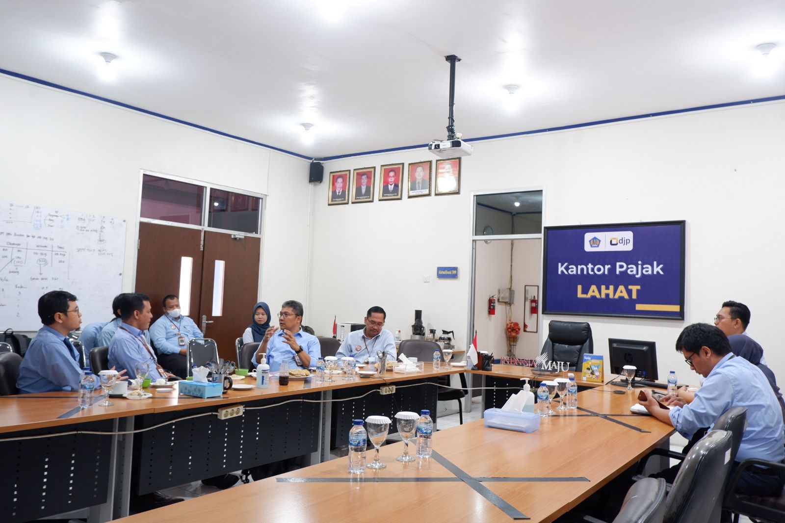 Inspektorat Jenderal (Itjen) Kementerian Keuangan (Kemenkeu) melakukan kunjungan persiapan perkembangan pembangunan Zona Integritas menuju Wilayah Bebas Korupsi (ZI-WBK) Kantor Pelayanan Pajak (KPP) Pratama Lahat di Ruang Rapat Kantor Pelayanan Pajak (KPP) Pratama Lahat, Sumatera Selatan (Rabu, 26/10). Kegiatan ini dihadiri oleh Tim Itjen dan Biro Organisasi dan Ketatalaksanaan Kemenkeu.