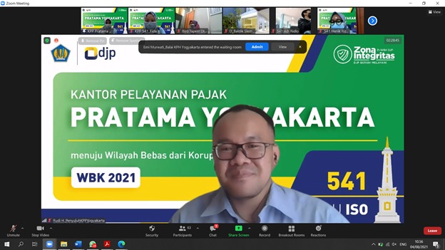 Kantor Pelayanan Pajak (KPP) Pratama Yogyakarta menyelenggarakan Sosialisasi Persiapan Implementasi e-Bupot Unifikasi dan e-Bupot PPh Pasal 21/26 di Yogyakarta (Rabu, 4/8). Acara ini dilaksanakan melalui aplikasi Zoom Meeting dan diikuti oleh seluruh instansi pemerintah yang terdaftar di KPP Pratama Yogyakarta.