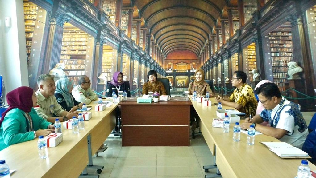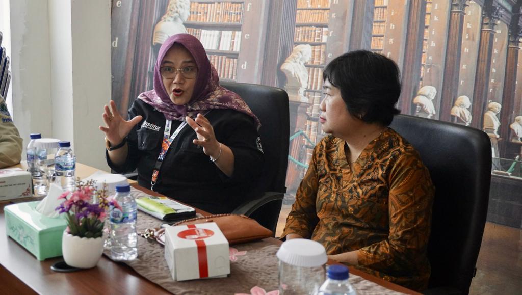 Kepala Kanwil DJP Jawa Barat III Lucia Widiharsanti didampingi Kepala Bidang Penyuluhan, Pelayanan, dan Hubungan Masyarakat Roos Indrapurwati Yulinapatrianingsih menyambut tim yang hadir di Ruang Tax Center Kanwil DJP Jawa Barat III.