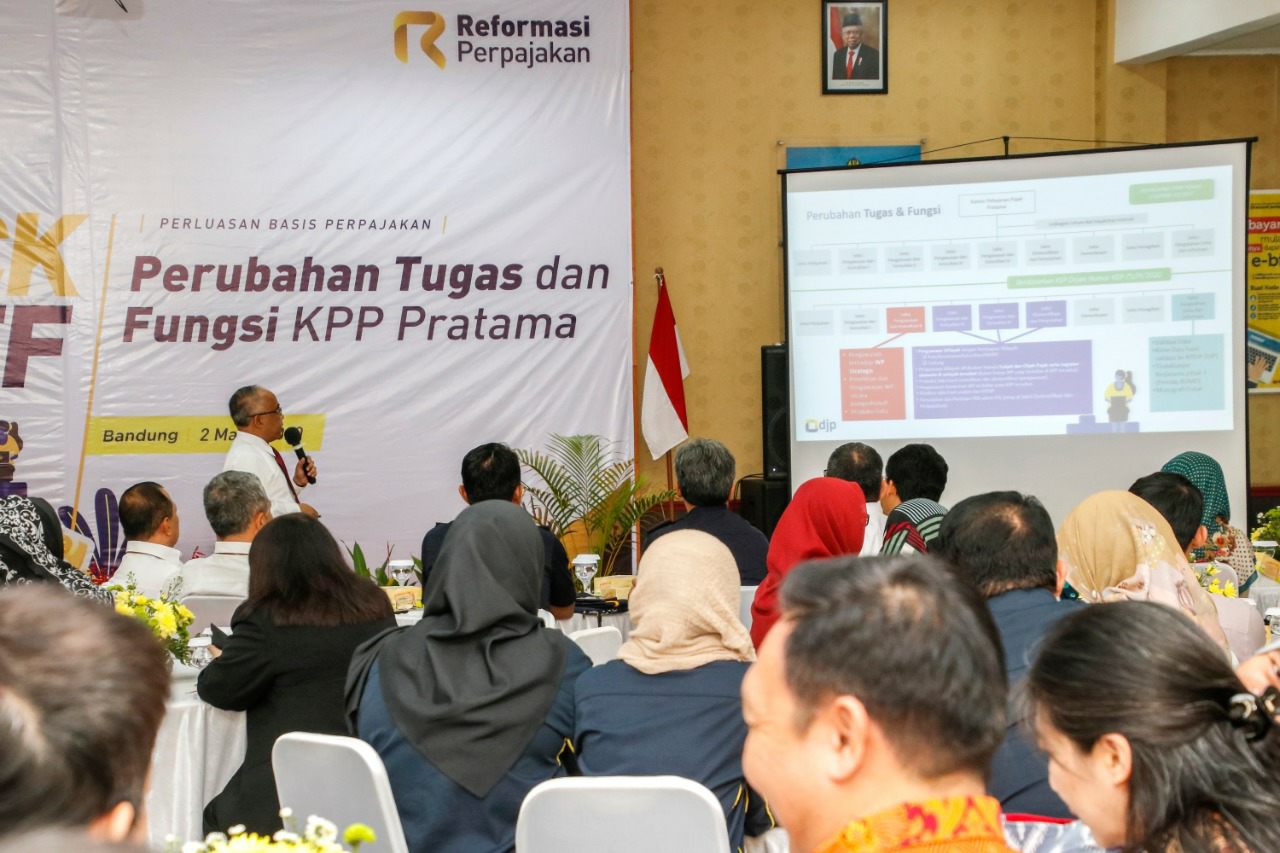 Kepala Kantor Wilayah Direktorat Jenderal Pajak Jawa Barat I Neilmaldrin Noor membuka acara Kick Off Perubahan Tugas dan Fungsi KPP Pratama yang bertempat di Aula KPP Pratama Bandung Cicadas (Senin, 2/3).