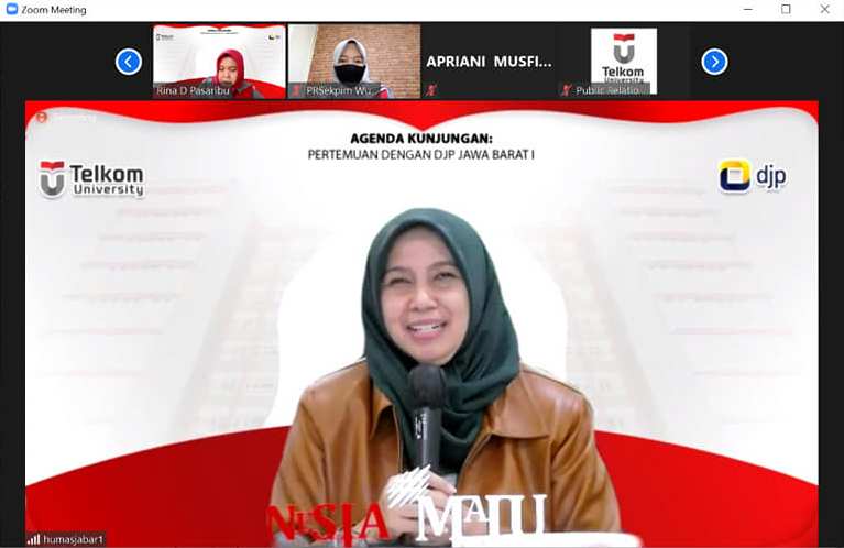 Kepala Kanwil DJP Jawa Barat I Erna Sulistyowati melaksanakan audiensi dengan Telkom University secara virtual melalui Zoom Meeting di Aula lt 1 Gedung Keuangan Negara Bandung (Senin, 8/3). Acara ini dihadiri oleh rektor Telkom University Adiwijaya beserta jajaran Civitas Akademika Telkom University.