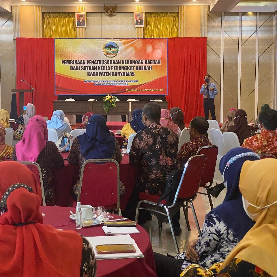 Kantor Pelayanan Pajak (KPP) Pratama Purwokerto menjadi nara sumber dalam kegiatan Pembinaan Penatausahaan Keuangan Daerah Satuan Kerja Perangkat Daerah Kabupaten Banyumas di D’ Garden Hall n Resto, Purwokerto, Banyumas (Rabu, 08/12). Kegiatan ini merupakan agenda rutin Badan Keuangan dan Aset Daerah Kabupaten Banyumas yang dilaksanakan setiap tahun.
