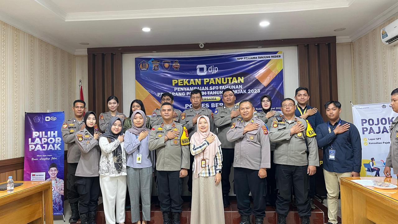 “Kami sangat berterima kasih kepada pihak KPP Pratama Tanjung Redeb yaitu Bu Wiwin Mardjiyati beserta tim yang bersedia hadir untuk menggelar acara ini,” ungkap Komank. “Tak hanya para anggota Polres Berau, nantinya kami akan mengajak masyarakat Berau untuk tak lupa melakukan pelaporan SPT Tahunan dan pemadanan Nomor Induk Kependudukan (NIK) sebagai Nomor Pokok Wajib Pajak (NPWP). Sebagai warga negara yang baik, kita harus taat akan kewajiban perpajakan kita,” tambahnya.