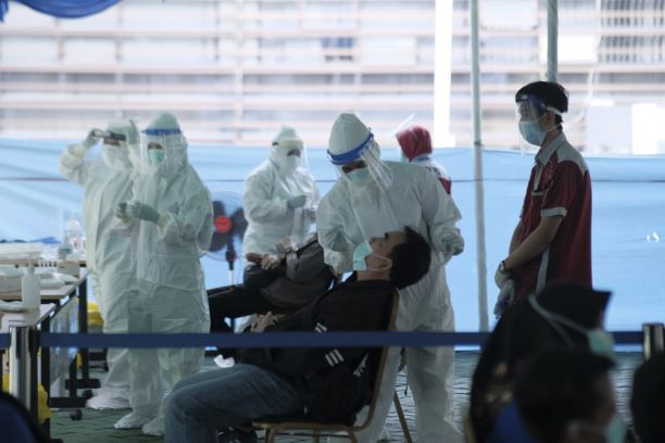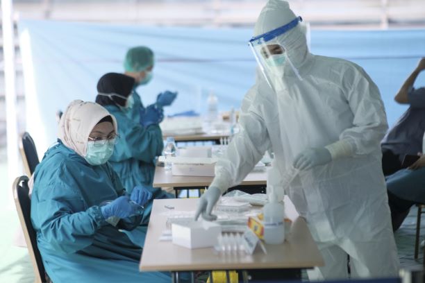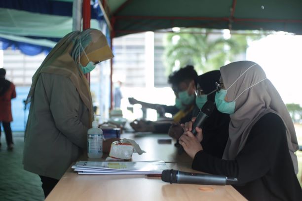 Seluruh pegawai KPP Pratama Balikpapan Barat mengikuti pemeriksaaan Swab Antigen yang diadakan di lapangan Kanwil DJP Kalimantan Timur dan Utara (Kamis, 28/1).