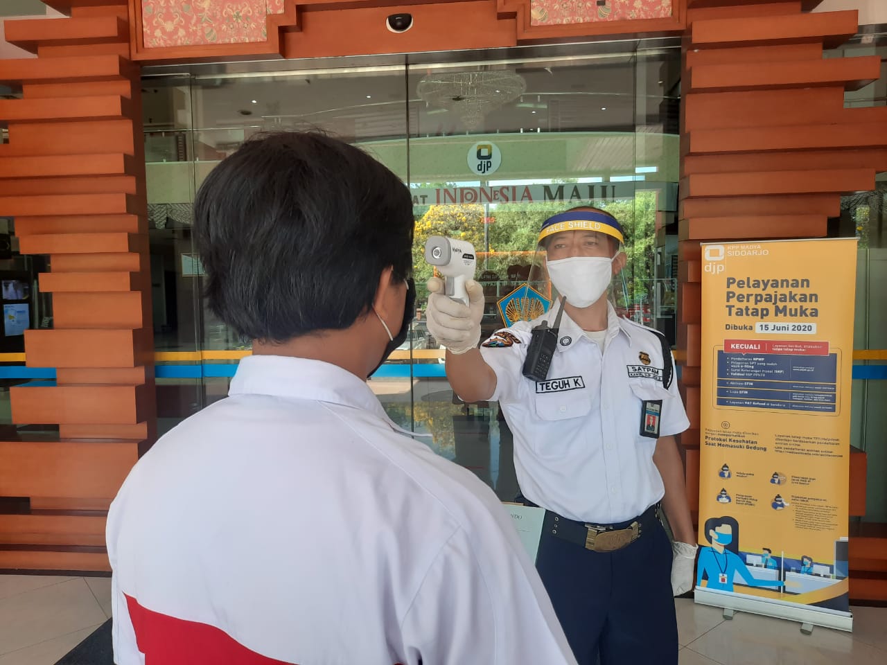 KPP Madya Sidoarjo kembali membuka layanan perpajakan tatap muka dengan penyesuaian dan pembatasan tertentu dalam rangka beradaptasi terhadap tatanan normal baru yg produktif dan aman Covid-19, bertempat di TPT (Tempat Pelayanan Terpadu) kantor di Sidoarjo (Senin, 15/06).