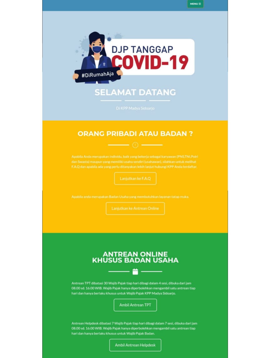 Setelah mendaftar diri melalui laman tersebut, wajib pajak akan mendapatkan QR Code yang akan dipindai oleh petugas respsionis saat akan mendapatkan layanan. Di laman tersebut juga telah disediakan FAQ yang dapat dipelajari oleh wajib pajak.