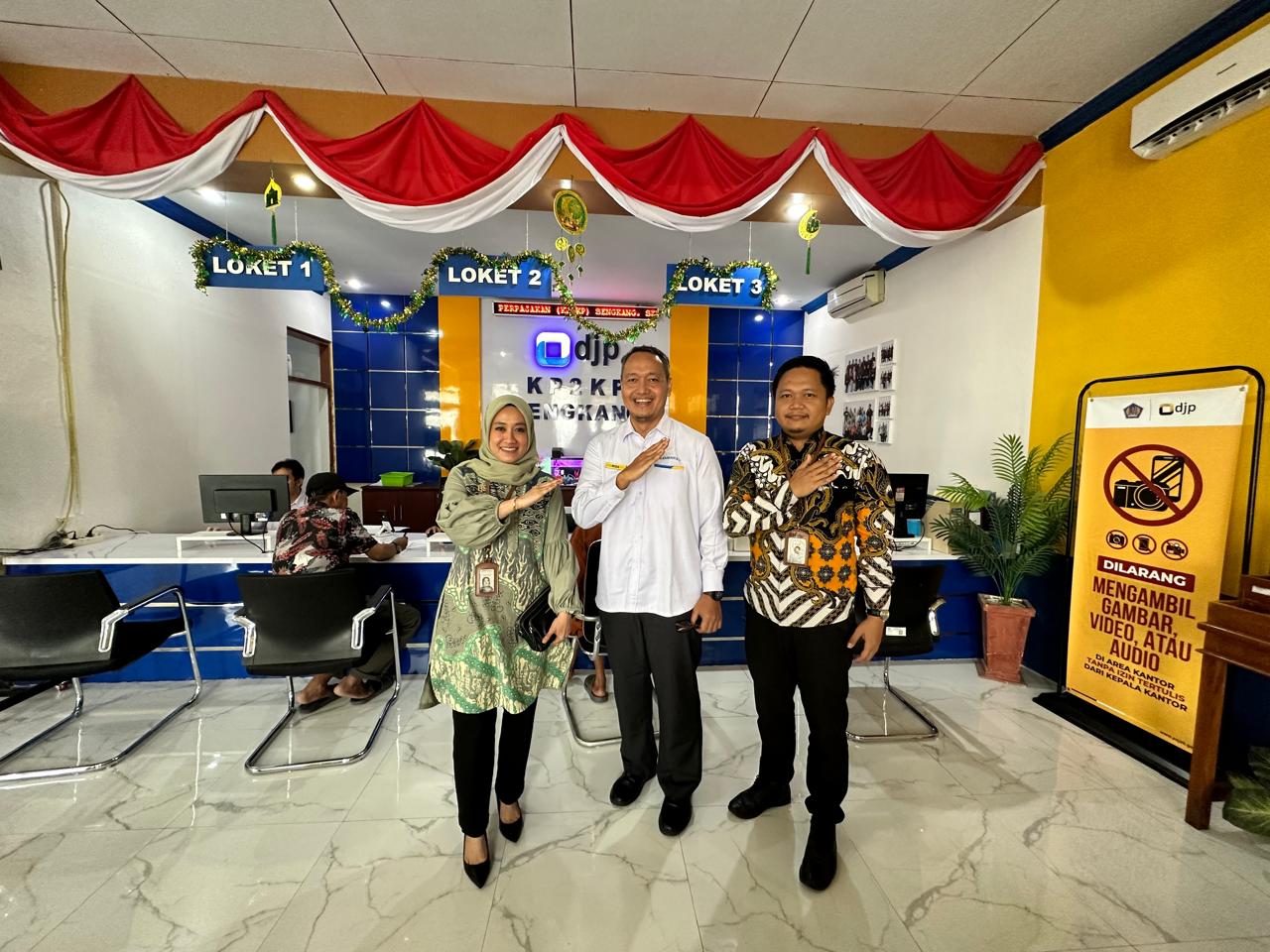 Kepala Kantor Pelayanan, Penyuluhan, dan Konsultasi Perpajakan (KP2KP) Sengkang, Riza Kurniawan, menerima kunjungan dari perwakilan Bank Syariah Indonesia (BSI) Cabang Wajo, di ruang Kepala Kantor KP2KP Sengkang, Jalan Nusa Indah Nomor 2 Sengkang, Kabupaten Wajo (Senin, 27/5). Pertemuan ini dilakukan dalam rangka penawaran layanan perbankan serta koordinasi kerja sama terkait penyediaan data dan kegiatan penyuluhan perpajakan bari para nasabah BSI.