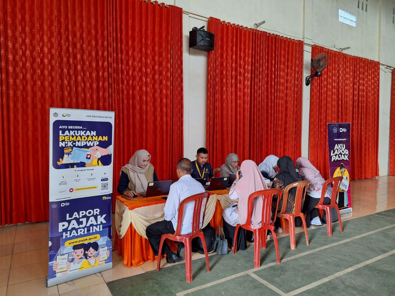 Kantor Pelayanan Pajak (KPP) Pratama Natar membuka Pos Pelayanan Pajak di Aula Gedung Serba Guna (GSG) Desa Gisting Bawah, Kelurahan Campang, Kecamatan Gisting, Kabupaten Tanggamus, Provinsi Lampung Selatan (Rabu, 13/3). Kegiatan yang diselenggarakan sejak 13 Maret 2024 ini dimaksudkan untuk menjangkau wajib pajak di wilayah Kabupaten Tanggamus, khususnya masyarakat yang berada pada Kecamatan Cukuh Balak, Kecamatan Kelumbayan, dan Kecamatan Pematang Sawa.