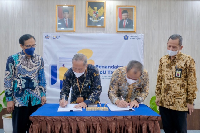 Sebagai upaya meningkatkan kesadaran pajak sejak dini dan mengenalkan pajak kepada generasi muda, Kantor Wilayah Direktorat Jenderal Pajak (Kanwil DJP) Jawa Tengah II melakukan kerjasama dengan Tax Center Universitas Slamet Riyadi (Unisri) Surakarta di Surakarta (Selasa, 7/6). Kerja sama ini ditandai dengan penandatanganan Memorandum of Understanding (MoU) oleh Kepala Kanwil DJP Jawa Tengah II Slamet Sutantyo dan Rektor Unisri Prof. Sutardi.