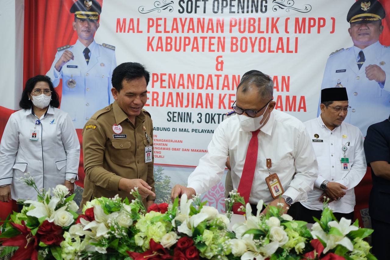 Slamet Sutantyo, Kepala Kantor Wilayah DJP Jawa Tengah II dan Purnawan Raharjo, Kepala DPMPTSP Kabupaten Boyolali melakukan penandatanganan di Kantor Mall Pelayanan Publik di kawasan Alun-Alun Lor Boyolali sekaligus menandai akan hadirnya pelayanan pajak di MPP Boyolali. Selain dengan Kanwil DJP Jawa Tengah II, penandatanganan dilakukan oleh DPMPTSP bersama sejumlah instansi seperti Kepolisian, Badan Pertanahan Nasional, dan jajaran Pemerintah Daerah (Pemda) Boyolali.