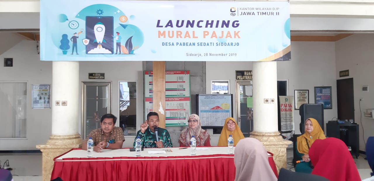 Kanwil DJP Jawa Timur II mengadakan sosialisasi pentingnya pajak kepada warga Desa Pabean Kecamatan Sedati, Sidoarjo (Kamis, 28/11). Puluhan murid-murid Taman Pendidikan Quran (TPQ) beserta guru dan orang tuanya berbaur dengan warga untuk mengikuti kegiatan yang bertempat di Balai Desa Pabean tersebut. Kepala Desa Pabean Achmad Khoirul yang juga hadir, dalam sambutannya menyampaikan apresiasi kepada Kanwil DJP Jatim II yang telah menyelenggarakan kegiatan tersebut.