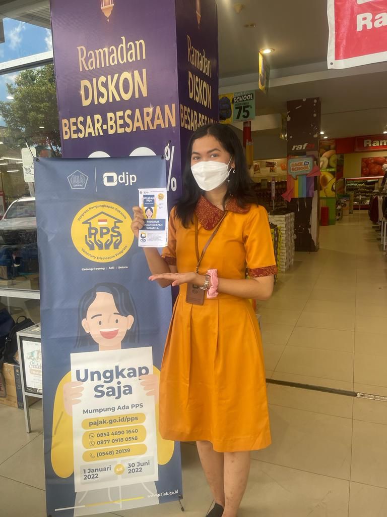 Sehubungan dengan Program Pengungkapan Sukarela (PPS) yang sudah mendekati batas akhir yakni pada tanggal 30 Juni 2022 ini, Kantor Pelayanan Pajak (KPP) Pratama Bontang makin aktif mengimbau masyarakat dengan mengadakan pojok pajak di pusat perbelanjaan paling ramai di Bontang, Ramayana Bontang yang terletak di Jl. MH. Thamrin, Bontang Baru, Kec. Bontang Utara, Kota Bontang (Minggu, 5/6).
