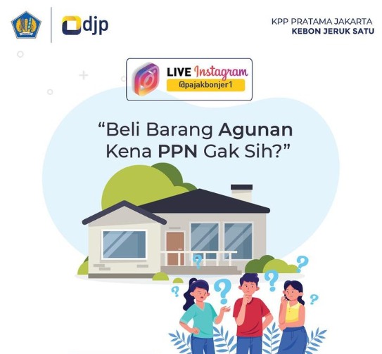 Kantor Pelayanan Pajak (KPP) Pratama Jakarta Kebon Jeruk Satu mengajak netizen untuk memahami PPN terkait penjualan Agunan Yang Diambil Alih (AYDA) oleh kreditur kepada pembeli. Ajakan ini dilaksanakan melalui live pada akun Instagram KPP Pratama Jakarta Kebon Jeruk Satu di Jakarta Barat (Kamis, 31/5). Rekaman kegiatan tersebut dapat disaksikan pada akun Instagram KPP Pratama Jakarta Kebon Jeruk Satu yaitu akun @pajakbonjer1.
