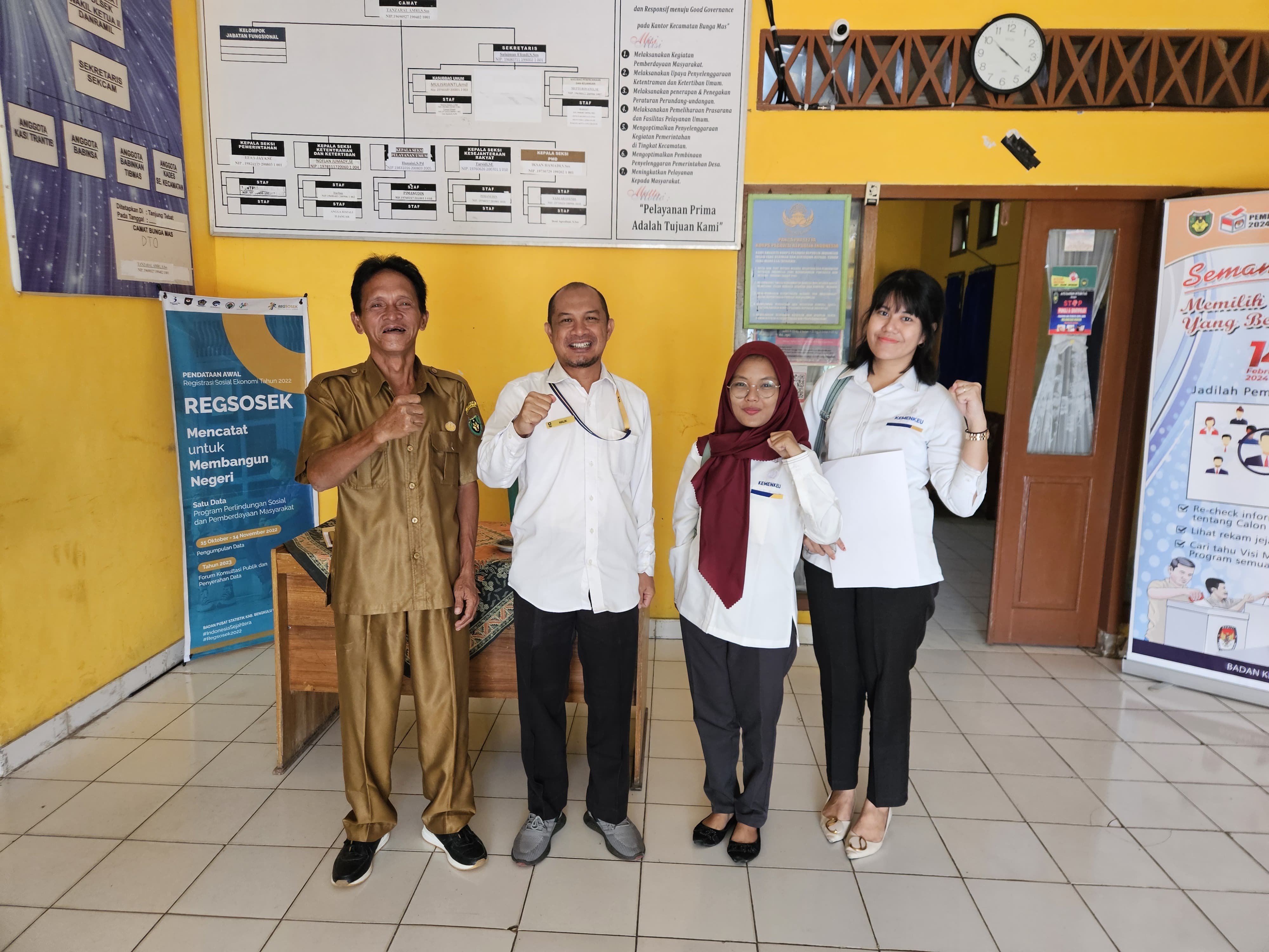 Kepala Kantor Pelayanan, Penyuluhan, dan Konsultasi Perpajakan Manna, Muhammad Halik Amin, bersama dengan pelaksana Kantor Pelayanan, Penyuluhan, dan Konsultasi Perpajakan Manna melakukan koordinasi dengan Kantor Kecamatan Bunga Mas yang berlokasi di Desa Tanjung Tebat, Kecamatan Bunga Mas, Kabupaten Bengkulu Selatan, Provinsi Bengkulu (Selasa, 5/2).