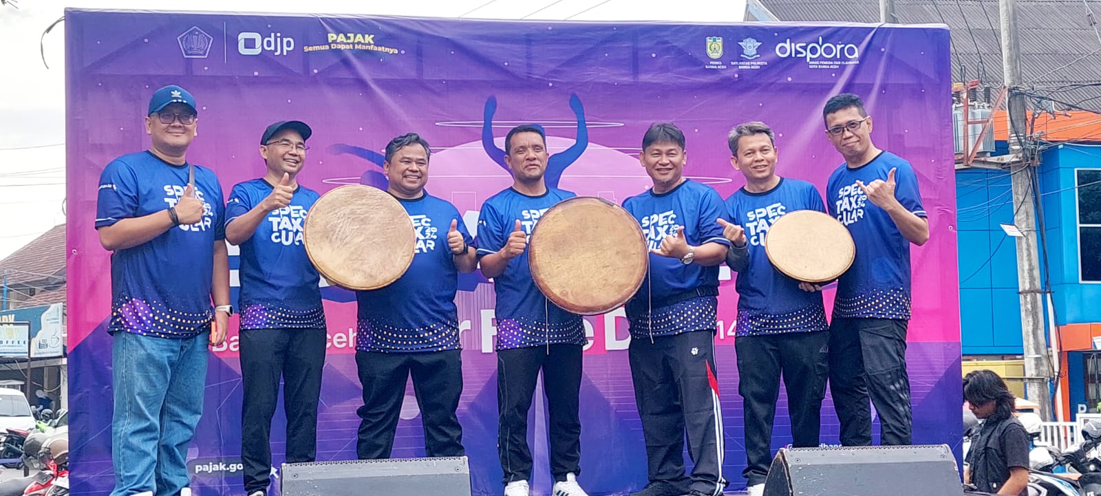 Pembukaan secara resmi kegiatan Spectaxcular ditandai dengan pemukulan rapa'i oleh Kepala Dinas Pemuda dan Olahraga (Kadispora) Kota Banda Aceh, Reza Kamilin, S.STP bersama Kepala Kanwil DJP Aceh, Paryan yang didampingi para pejabat eselon III di lingkungan Kanwil DJP Aceh.