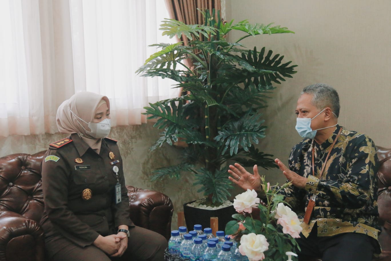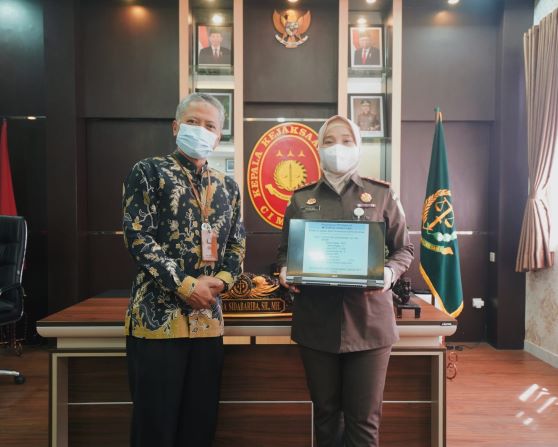 Kepala Kejaksaan Negeri (Kejari) Cimahi Rosalina Sidabariba, S.H., M.H. menunjukkan bukti lapor SPT Tahunannya saat menerima kunjungan Kepala KPP Pratama Cimahi Joni Isparianto dalam rangka Pekan Panutan 2022 di Kantor Kejaksaan Negeri Cimahi, Jalan Sangkuriang nomor 103, Cimahi, (Kamis, 10/3).
